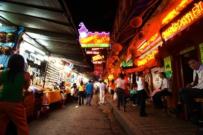 Patong Beach, where I’m staying, is a pretty touristy place. There are tons of open-air, neon-lit bars. Many of them are what are known as “lady bars.” Women come out into the street to talk to passers by, and try to get them to come have a seat. After you sit down, immediately one to three Thai women will drape themselves over you and start sweet talking you. They’re pretty skillful, actually. They’ll joke around, flirt, play Connect Four and other games with you, trying to get you to buy them drinks. The whole situation is really silly, when you think about it. But, there were tons of men who were lapping it up, feeling like James Bond. If you keep your head on straight, and realize it’s all about the money, then it can be fun. I played a few games of Connect Four. It’s impossible to beat them. They’ve all played the game thousands of times. They would also challenge you to a hammer and nail race: they’d start a couple of large nails into a huge block of wood, then you would take turns swinging a chisel-ended hammer at your nail, trying to be the first to hammer the nail all the way into the wood. I lost a lot of games and bought a lot of drinks.
