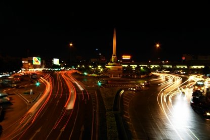 After that, I decided to try to take a few pictures of the MBK Center at night, since it’s been such a great friend to me. As I was preparing to buy my Skytrain ticket, a couple of tourists walked up and gave me their all-day pass, because they were done with it for the day. What a lucky break that was! It was only about 9pm, so that gave me tons of time to explore the Skytrain system. I snapped some shots at the MBK Center, then went to the opposite end of the Skytrain route to photograph the Victory Monument. The monument is surrounded by a traffic circle, which again would make some nice long exposure night shots if they’re not blurry.
