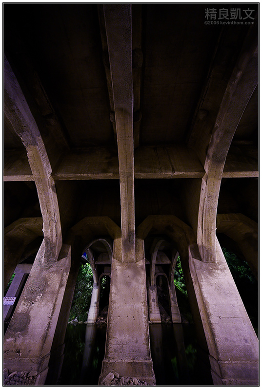 I went shooting tonight at the Desjardins Canal. It’s an interesting place. Four large bridges cross it at various angles and levels, and there’s a long staircase that winds up the valley of the canal to York Boulevard, so there are quite a few interesting angles. It was dark, and mostly deserted, so it was kind of a freaky place to be hanging out, especially with an extremely conspicuous and expensive-looking camera. The place looked like a setting for a video game… one of those video games in which plenty of people die. Anyway, I got what I wanted as quickly as possible, which is not too quick with 30 second exposures. I’m not sure what I’ll do with these photos, but it was a fun adventure taking them anyway.