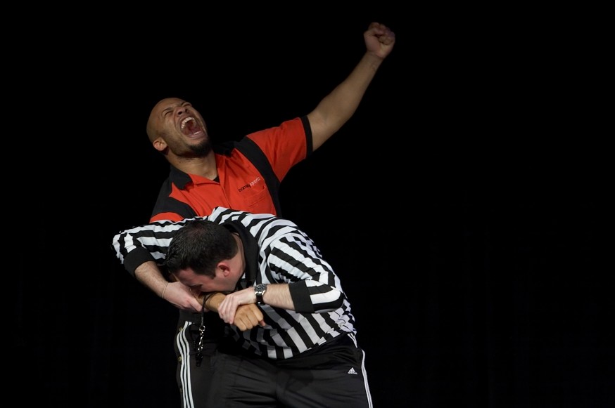 After the headline show, I went to the Arts Center and shot some photos of Aphasia, which is a great three-person group from Chicago. Then I headed back to the DSI theatre to cover the Cagematch. It was exciting to see the ITC team win the crowd in the 6-minute preliminary round, but they were bested by the 10-time champs, Siegelprov in the 22-minute round.