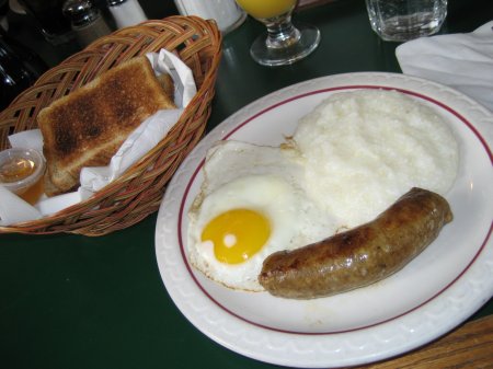 The sausage was great. The grits were… um. Well, unremarkable. They had almost no flavour. Jen would love them 😛