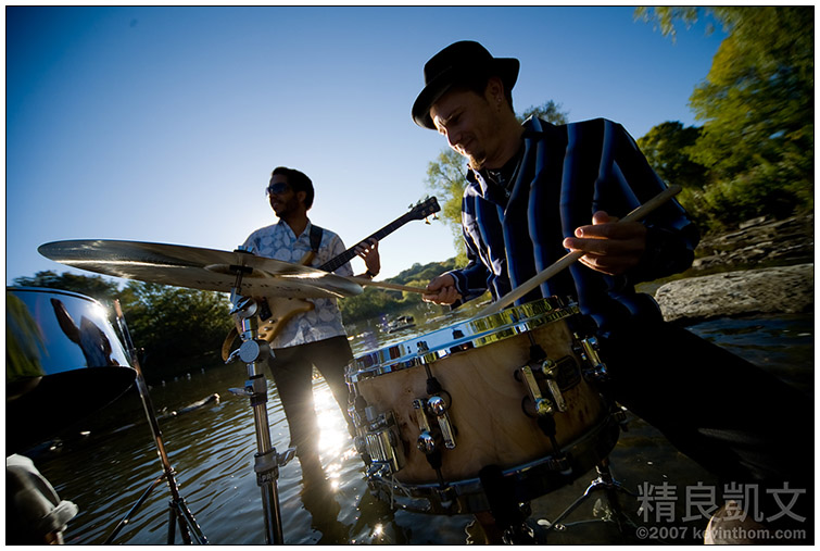 When we finally got to shooting, the band was great. They played a few songs, and soon enough, a crowd was gathering on the riverbank, cheering and clapping and whistling at the end of each song. The guys were really getting into it, goofing around, switching instruments, having fun. As the sun came up, it even became quite pleasant to be standing in the river.
