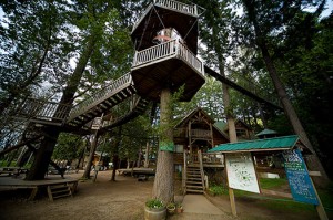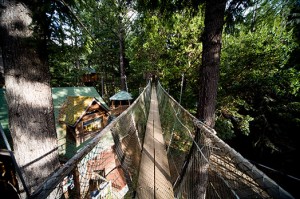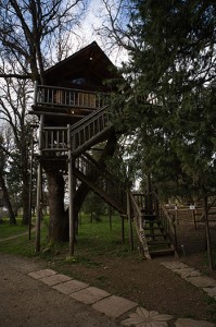 After our hike, we headed out onto the road again, driving back through Crescent City to pick up a picnic lunch at Safeway, then parking off the highway in the forest to enjoy our meal. After lunch, we drove up highway 199 to Oregon, where we found the Treesort. Spending the night in a treehouse was a lot of fun. It feels like being a kid again. Our treehouse was called the Peacock Perch. It’s pretty cozy.