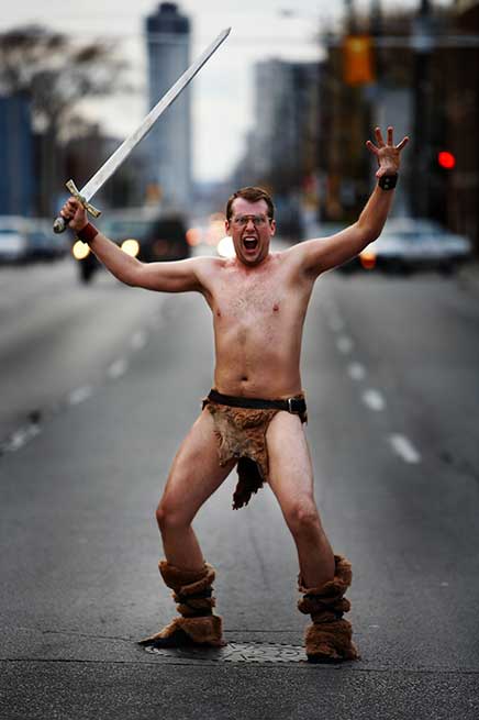 Even while we were shooting these photos, it was hard not to laugh. Merke has parlayed that kind of reaction into spots on MuchMusic and The Comedy Network. He says a great promo shot instantly links your message and your audience. “You send a statement in seconds and gets people talking about you and your project,” he says.