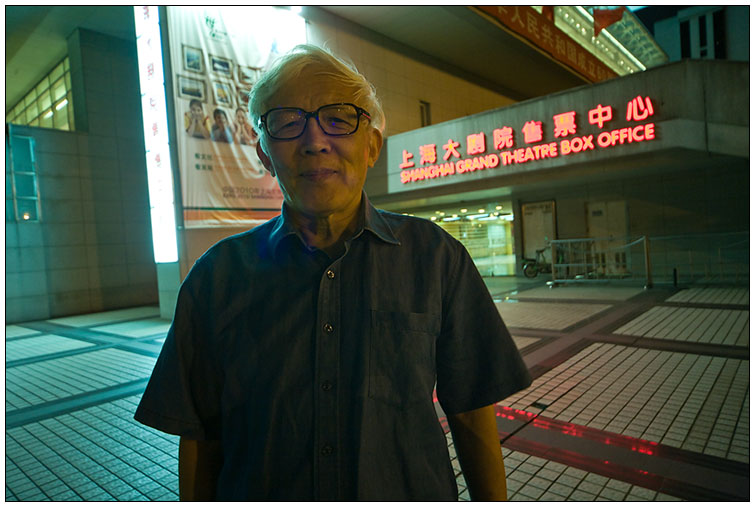 Tonight I did a little exploring Shanghai with my camera. While I was getting a sort of substandard photo of the Grand Theatre, I met a very talkative old gent. It seems that producing a fancy camera on the street causes most Chinese to take notice, and a good number of them to come over and chat. We conversed half in Chinese and half in English. Okay, to be honest, it was more 90% in English and 10% Chinese. His English was 90% better than my Chinese, so it only seemed fair. Kind of cool to think that he was 16 when Mao kicked off the revolution. He suggested that Laura and I should bring our Birth Your Dreams exhibition to Beijing or Shanghai because it would be good for my career. No kidding, right?
