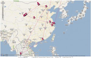 It shows the distance traveled as being about 32,681 km (including flights to and from Toronto), but I’m sure it was more than that. The distances were “as the crow flies,” so didn’t account for the winding, weaving roads and railroads between places. The trip started with a flight in to Shanghai, located around the center of the image, and ended when I left Hong Kong to return to Toronto. Looking at this stark map, it brings to mind vivid memories of those places and experiences represented by the magenta pins and lines.