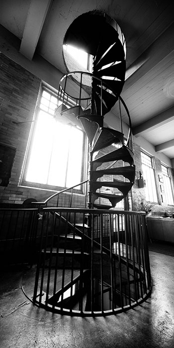 My friends at the Staircase Theatre in Hamilton asked me to do some interior photos that could be printed 4 feet wide and 8 feet tall to decorate the back of the building. The back part of the building is where the actual theatre space is, so the windows were blacked out to keep the space dark. Unfortunately, that made the windows somewhat unattractive from the outside. The idea was that the images I created would give a hint at what was inside the building, while covering up the unsightly blacked-out windows.