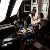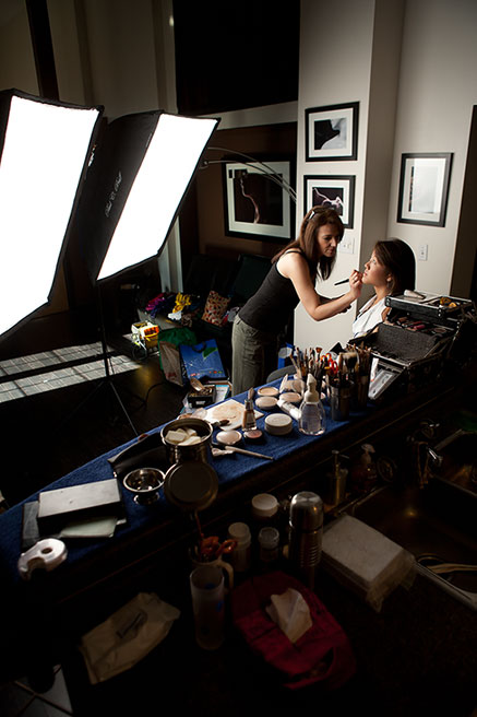 Laura showed up at my studio with bags of shoes and accessories and a giant suitcase full of clothes. I encourage models to bring as much stuff as they want, because we can always sort through it to find just the right looks for the shoot. Laura took to this assignment like a fish to water, and as you can see, within a span of an afternoon, we were able to capture a number of very different photos for her. We worked with renowned hair and makeup artist Sue Upton, who is a master of transforming the girl next door into a femme fatale, sophisticated debutante, or any other look in-between. The super-sassy orange background shots are closest to Laura’s actual personality, but she easily pulled off the other looks with style and grace too.