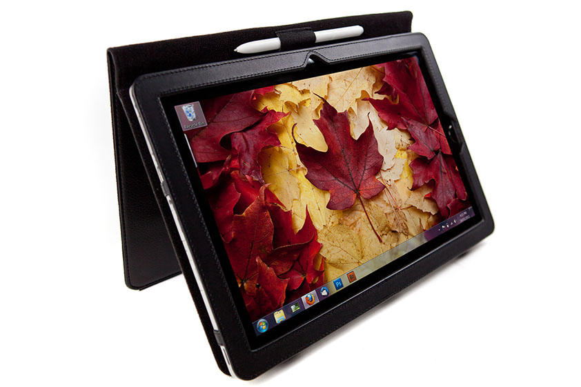 The general impression of this machine is that it’s rock solid. It’s built very solidly with no flex; it feels quite rigid. Although at 2.56 lbs, it would be considered light for a laptop computer, it feels extremely substantial in the hands. I wouldn’t want to hold it with one hand for a prolonged period of time. I found the best way to hold it is to cradle it on my left forearm and use the pen with my right hand.
